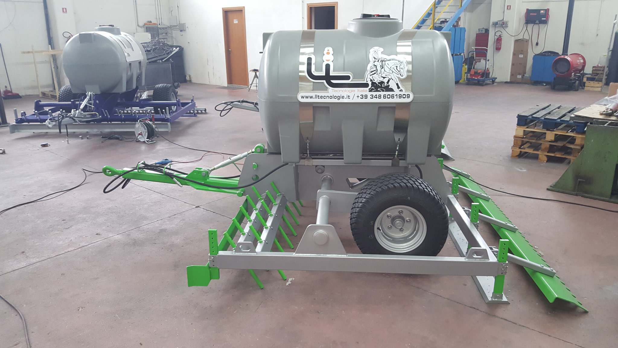 Costruzione erpici per la preparazione di terreni per impianti ippici, disponibili in varie colorazioni.